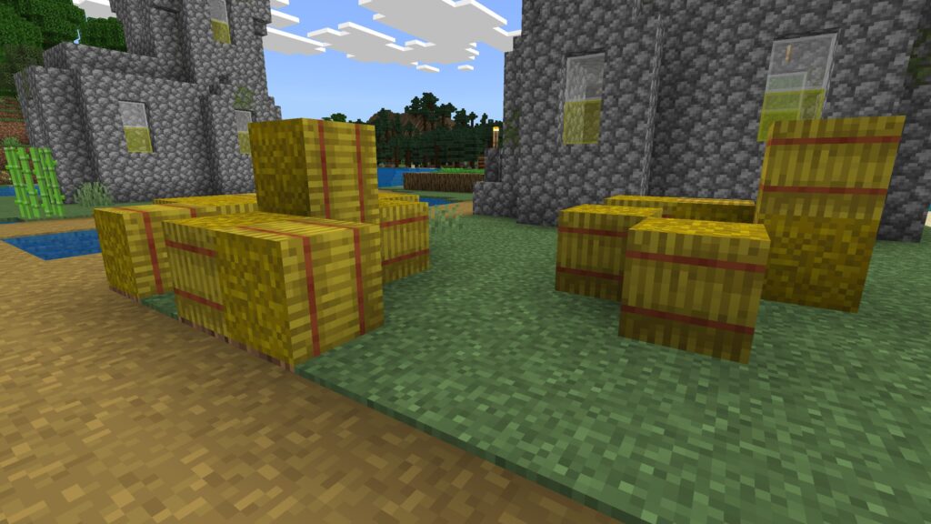 干草の俵は1個が小麦が9個分になり、パン3つ分の小麦を集めることができます。