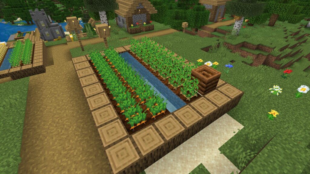 村の畑には小麦、ニンジン、ジャガイモ、ビートルートといった野菜が育てられています。