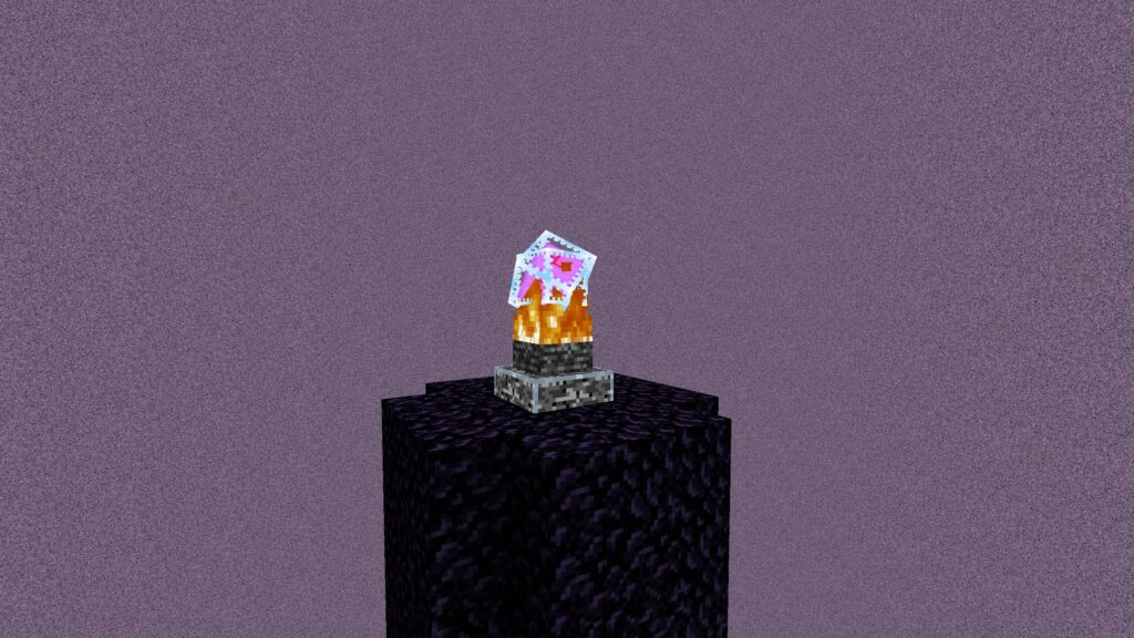 エンドクリスタルは鉄格子に囲まれていないものはすべて弓で破壊し、囲まれているものは足場ブロックで登って破壊します。