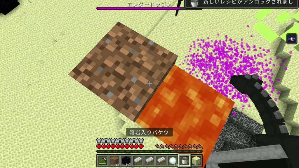 エンダードラゴンの体力が0になったら、あなたの勝利です!