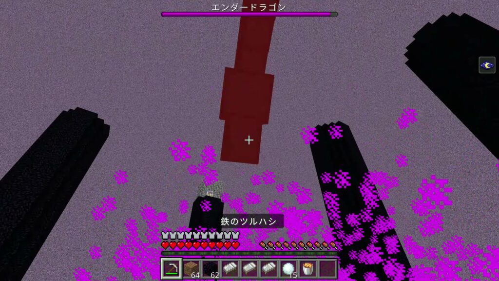 エンダードラゴンは塔の上にあるエンドクリスタルを使って回復するため、どんなに攻撃しても、すぐに回復されてしまいます。