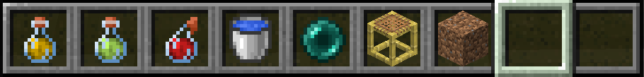 武器や防具以外のアイテムについてはポーションや水バケツ、エンダーパール、足場ブロックを持っていきましょう。
