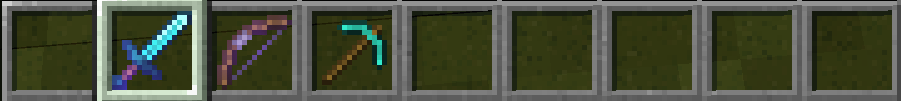 武器はダイヤモンドの剣、弓を作っておくとよいでしょう。ブロックを壊すためのツルハシも持っていきましょう。