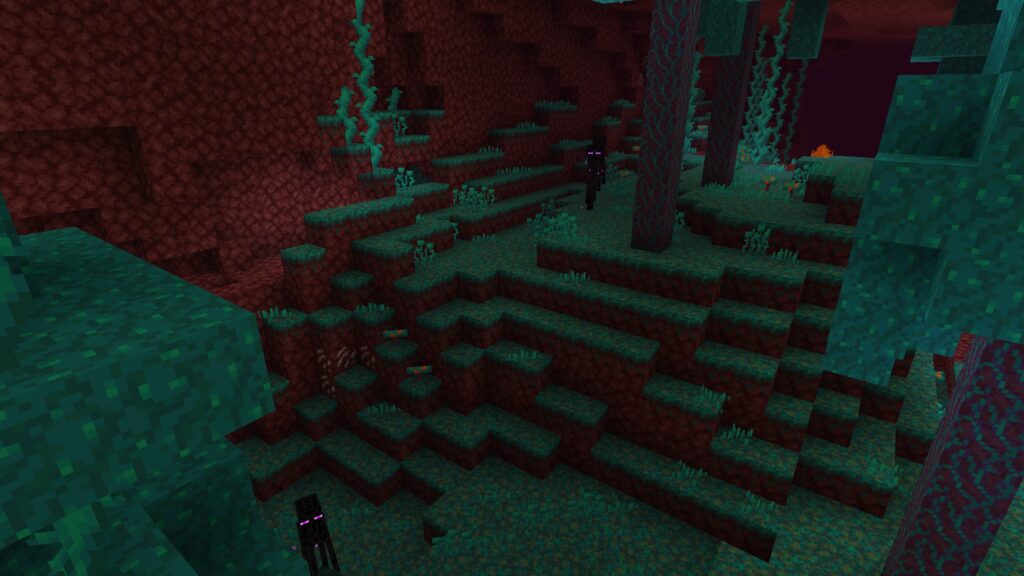 エンダーパールを集める際は、エンダーマンが出現しやすい場所である歪んだ森のバイオームに行きましょう。歪んだ森はネザーあるバイオームです。